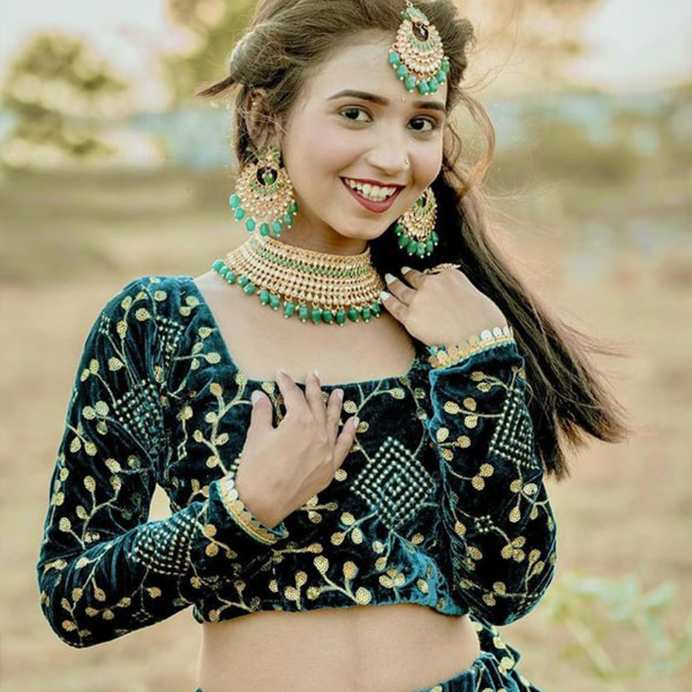 A peacock green lehenga is a stunning traditional Indian outfit that exudes elegance and charm. The rich and vibrant shade of green resembles the beautiful feathers of a peacock, giving this lehenga a unique and eye-catching appeal. The lehenga, a long skirt, is typically made of luxurious fabrics such as silk or velvet, adorned with intricate embroidery and embellishments. The ensemble is often paired with a matching blouse and a dupatta, a flowing scarf. Wearing a peacock green lehenga is perfect for special occasions like weddings or festivals, as it effortlessly combines tradition with contemporary style. The color green symbolizes new beginnings, growth, and prosperity, making it an auspicious choice for any celebration. With its regal color and attention to detail, a peacock green lehenga is sure to make a statement and leave a lasting impression.